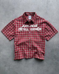 "ARTIFICIAL INTELLIGENCE" RED PLAID BUTTON-UP SHIRT